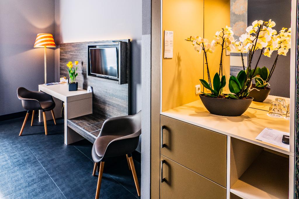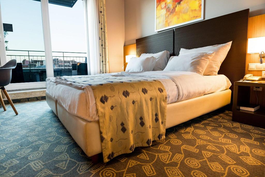 In den Zimmern gibt es eine Klimaanlage, eine individuell steuerbare Heizung und einen Ventilator. Die Gäste können den Stadtblick von Balkon oder Terrasse genießen. Die mit Teppichböden ausgestatteten Zimmer verfügen über ein Doppelbett oder ein Kingsize-Bett. Zustellbetten können angefordert werden. Außerdem sind ein Safe, eine Minibar und ein Schreibtisch verfügbar. Auch ein Kühlschrank und eine Tee-/Kaffeemaschine sind vorhanden. Ein Bügelset ist für den zusätzlichen Komfort der Gäste verfügbar. Darüber hinaus sind ein Telefon mit Direktwahl, ein TV-Gerät mit Satelliten-/Kabelempfang, ein Radio und WiFi vorhanden. Eine Dusche und eine Badewanne gehören zum Interieur der Badezimmer. Für den täglichen Gebrauch stehen ein Haartrockner, Bademäntel und ein Telefon zur Verfügung. Als Besonderheit genießen die Gäste in den Badezimmern Kosmetikartikel und eine Auswahl an Handtüchern. Außerdem sind rollstuhlgerechte Zimmer mit barrierefreiem Badezimmer buchbar. Das Haus bietet Nichtraucher- und Raucherzimmer.